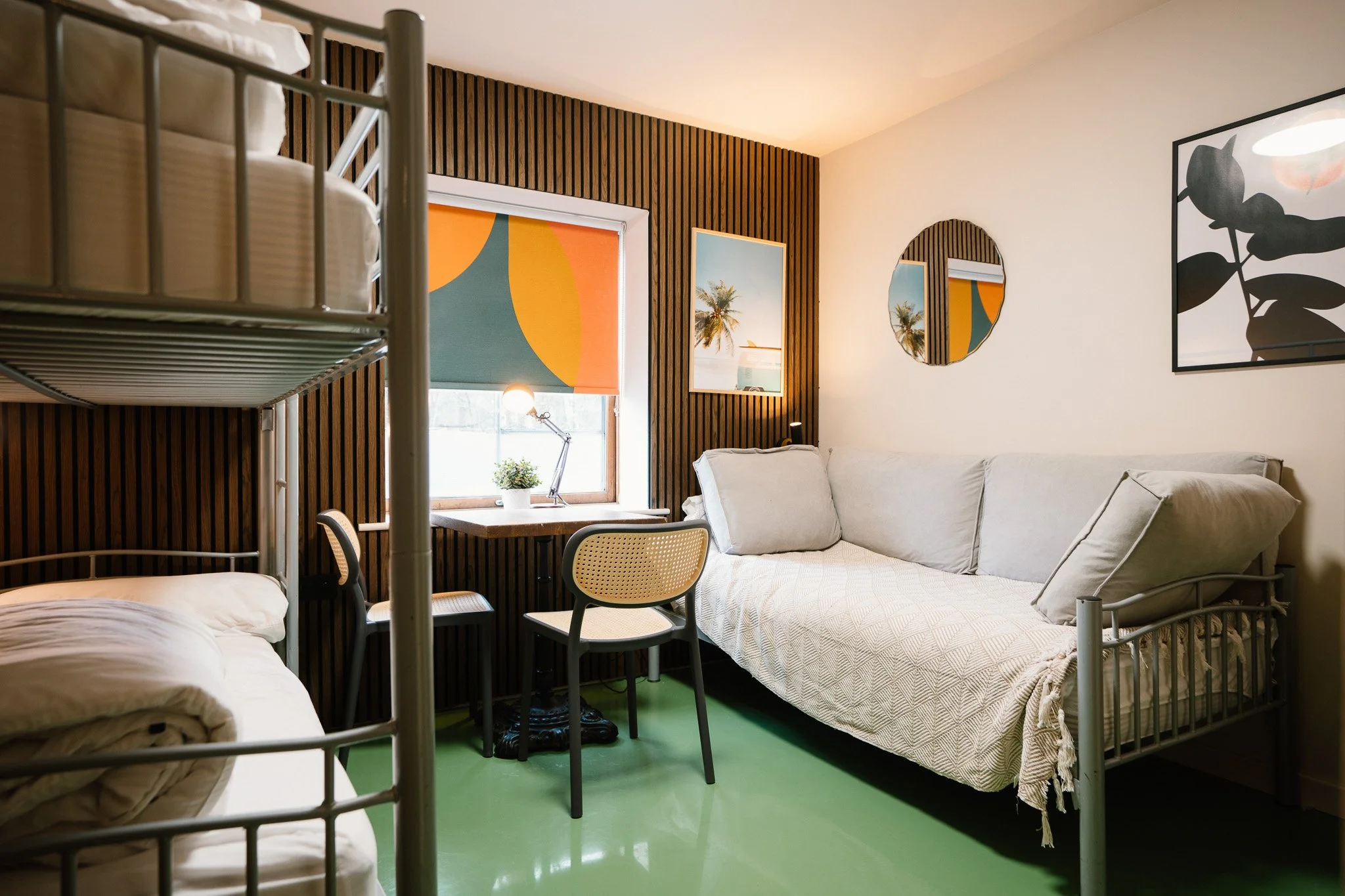 A private, ground floor (dog friendly) ensuite room, suitable for couples and small groups. Contains 2 bunks and a day bed/couch (sleeps 3 max).